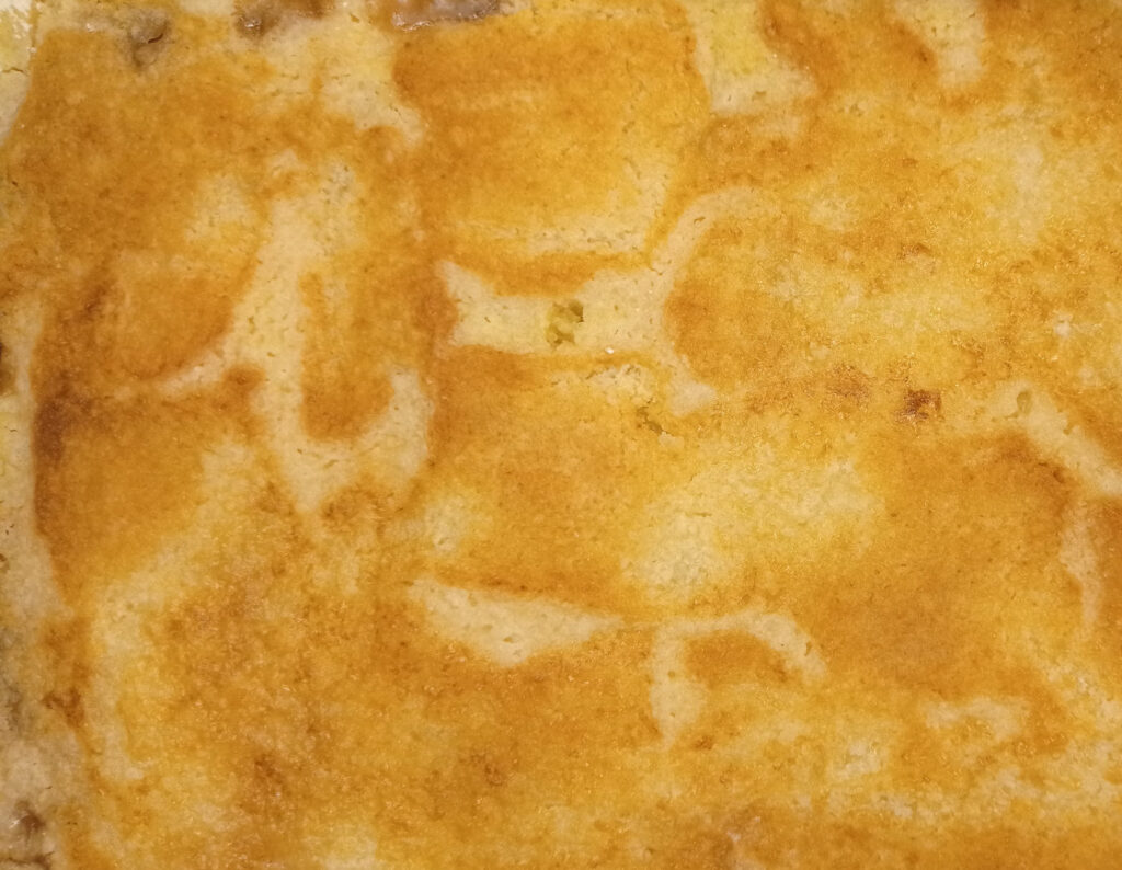 Dolce senza pensieri, si prepara in un attimo e senza sporcare nulla oltre la teglia. Basta avere della frutta anche sciroppata, una scatola di preparato per torte e del burro. Cerco sempre di avere gli ingredienti in dispensa perché questo dolce mi piace tantissimo e poi è ottimo tutto l’anno, in estate freddo servito con del gelato e in inverno con della crema inglese e una tisana calda fumante. Perfetto come dessert ma anche come merenda o per colazione.