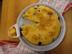 VINO IN ABBINAMENTO: nonostante di solito i frutti rossi si abbinino ai vini rossi, vi suggerisco un moscato d’Asti. La sua acidità pulisce il palato e bilancia la grassezza del burro. La componente floreale del suo profilo aromatico ben si abbina al mirtillo e al gusto del mais.